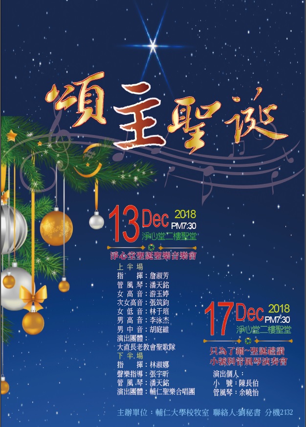 活動:2018淨心堂慶祝聖誕節--聖樂音樂會「頌主聖誕」