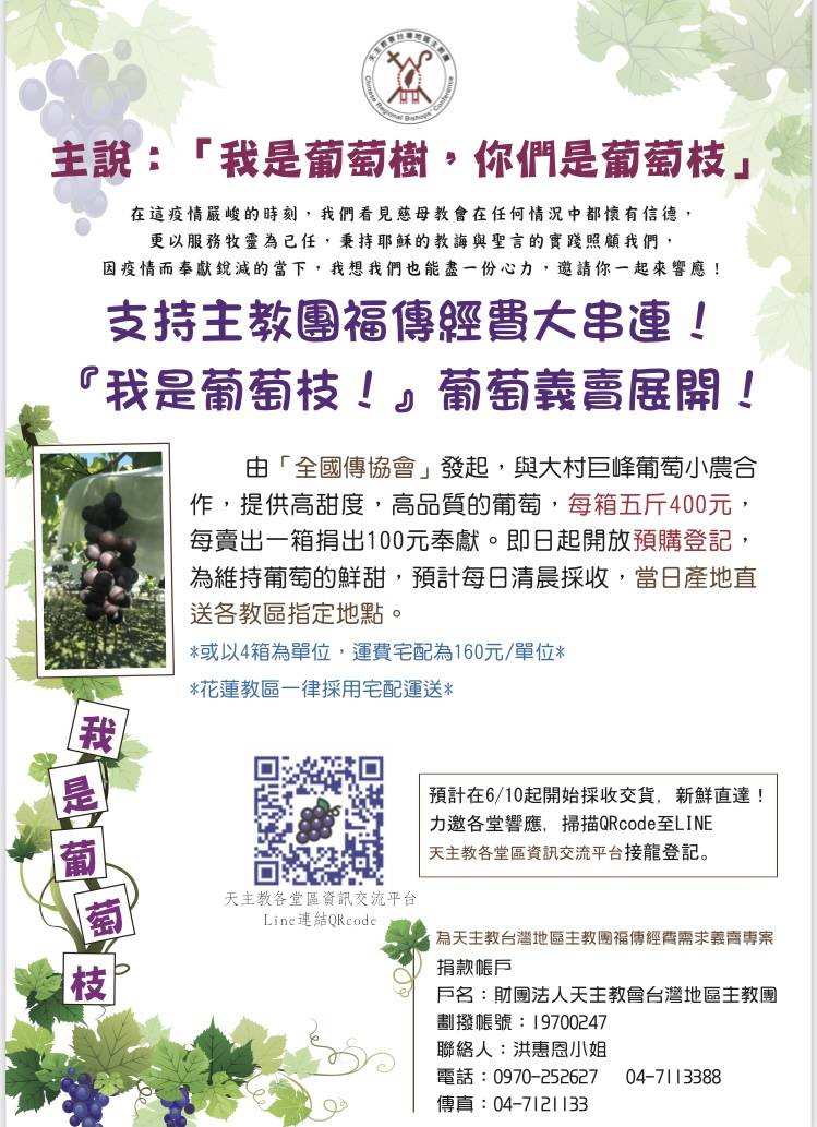 五、主教團「我是葡萄枝」葡萄義賣活動請詳參附件文宣檔。